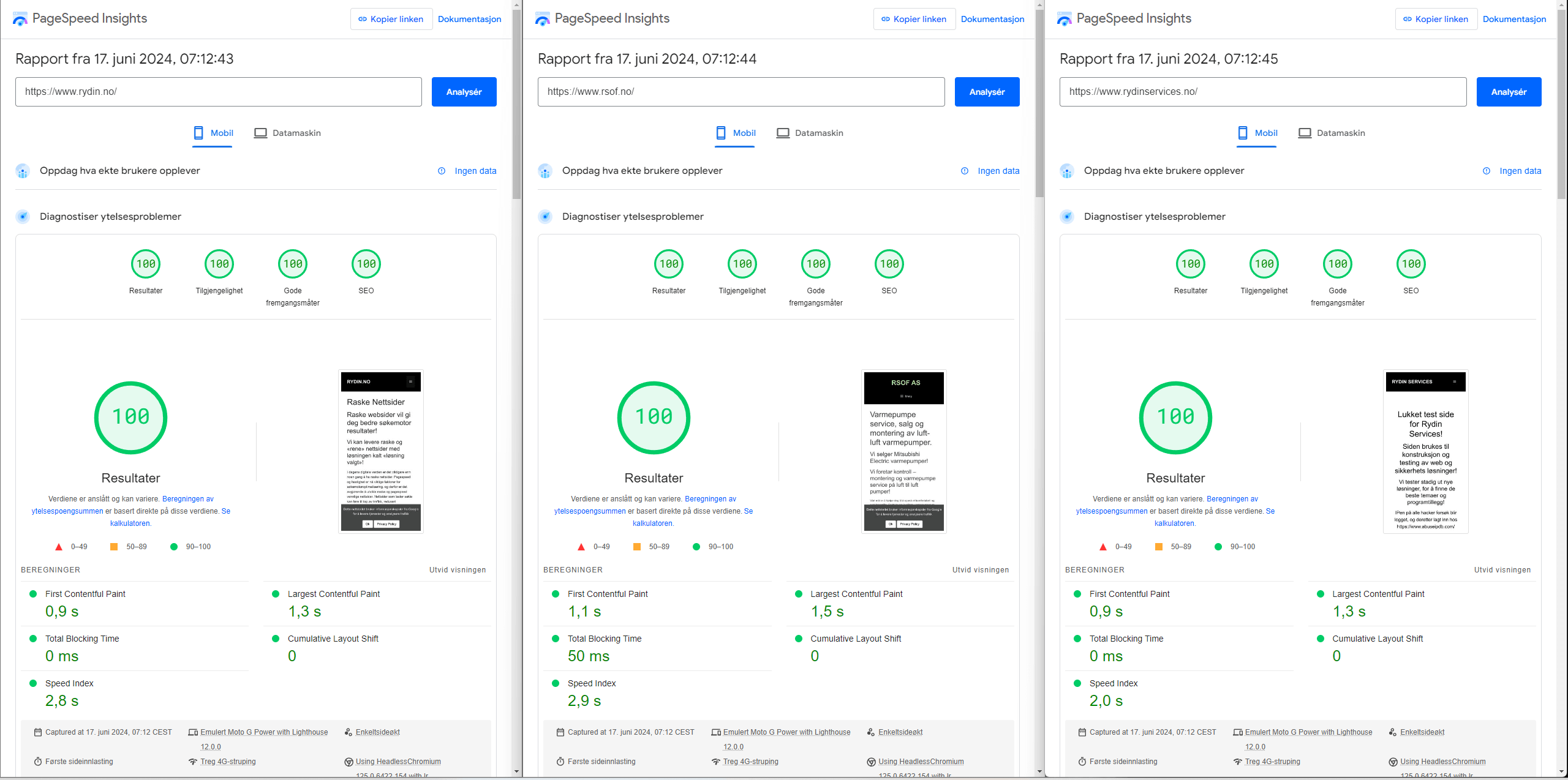 Vi anbefaler at du bruker google verktøyet: Google PageSpeed Insights